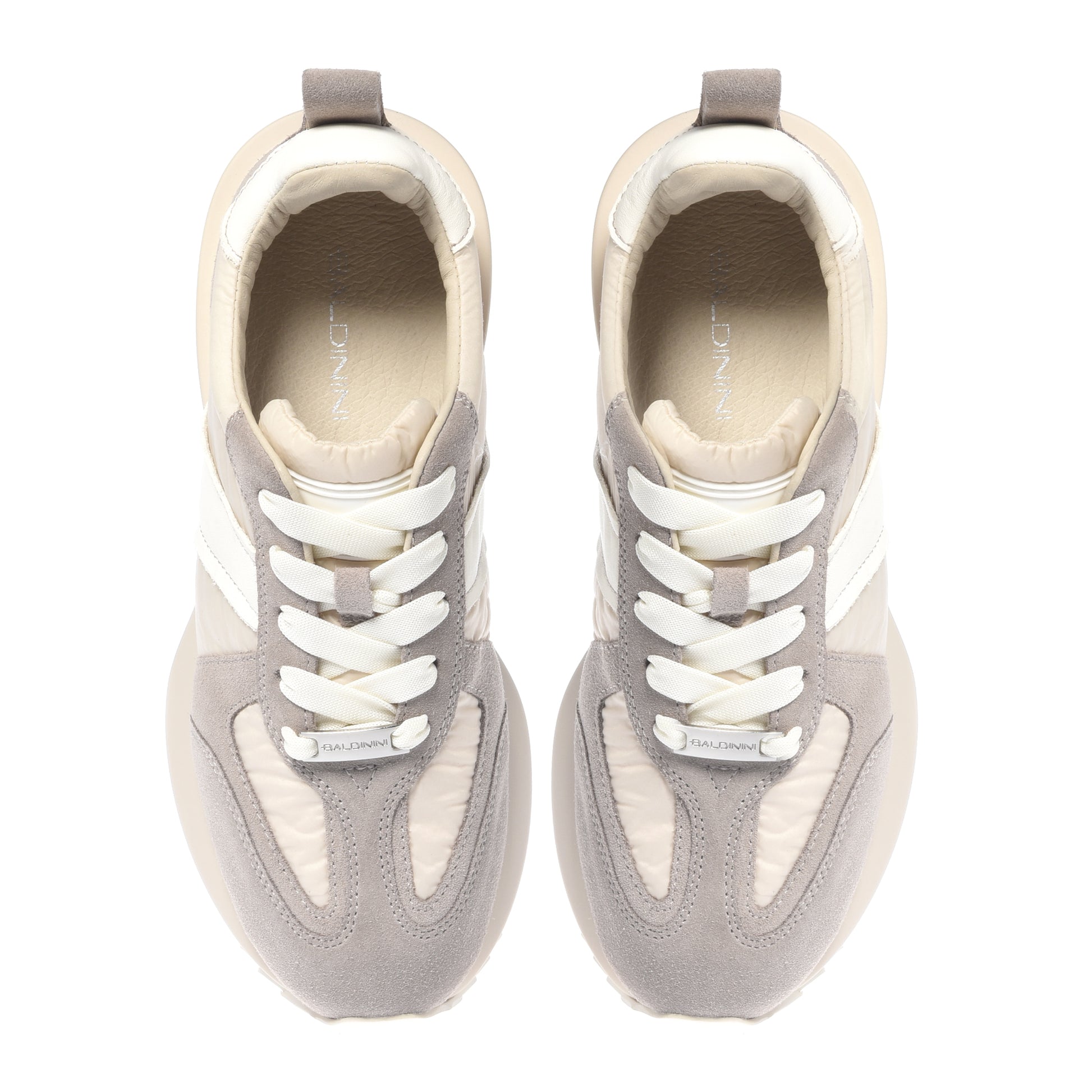 Taupe leather and vanilla nylon sneakers