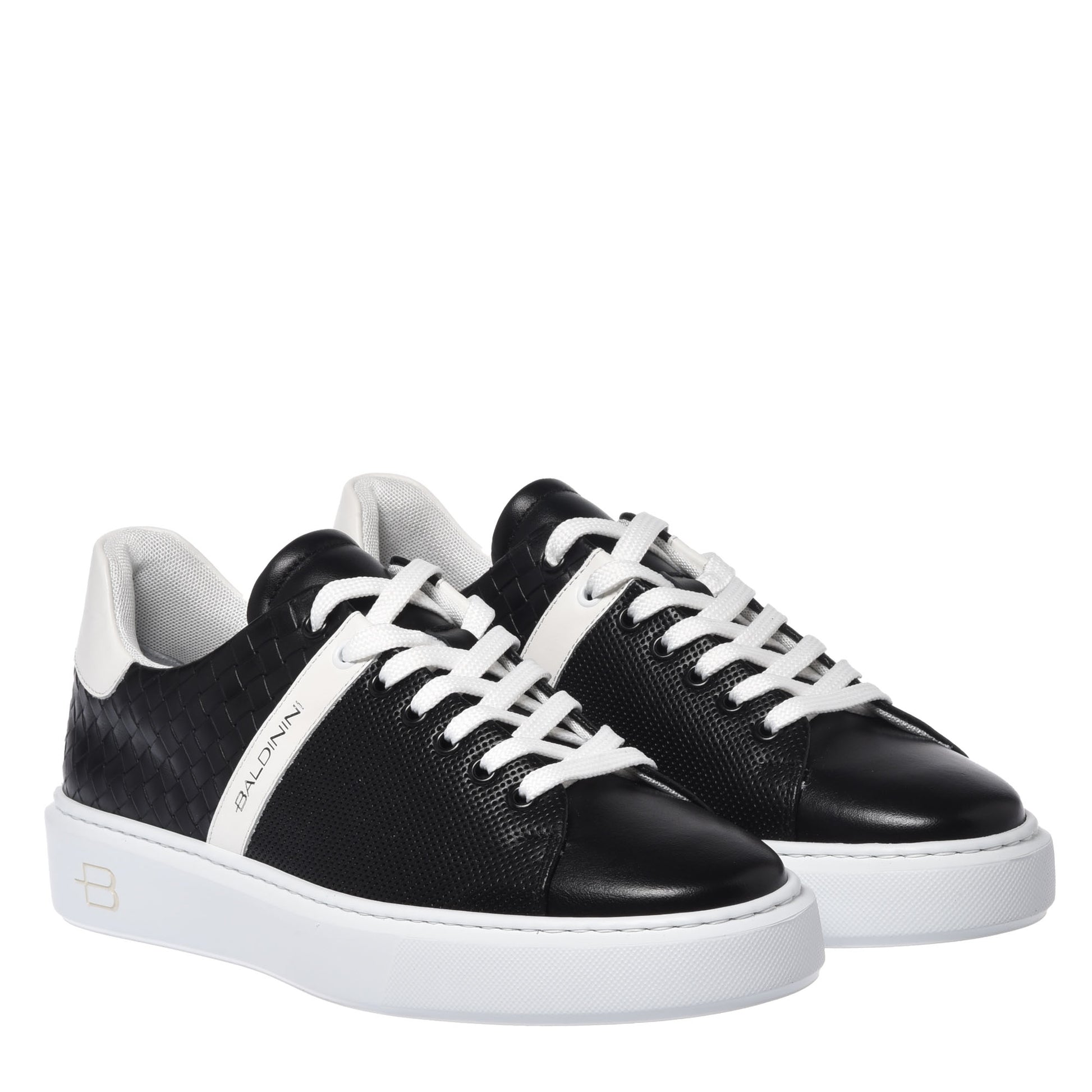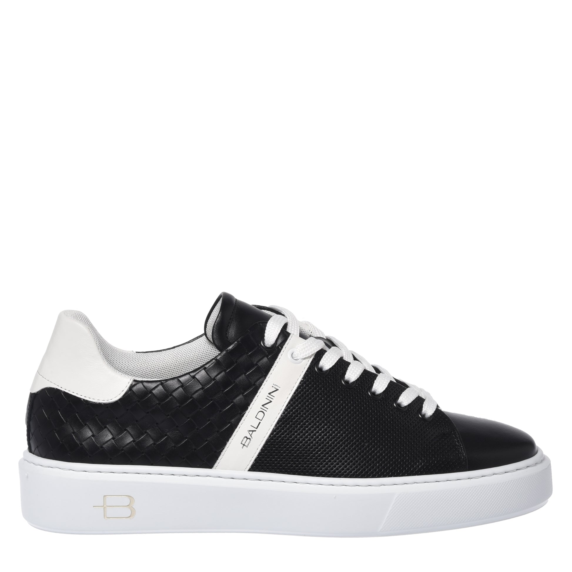 Black braided effect leather sneaker
