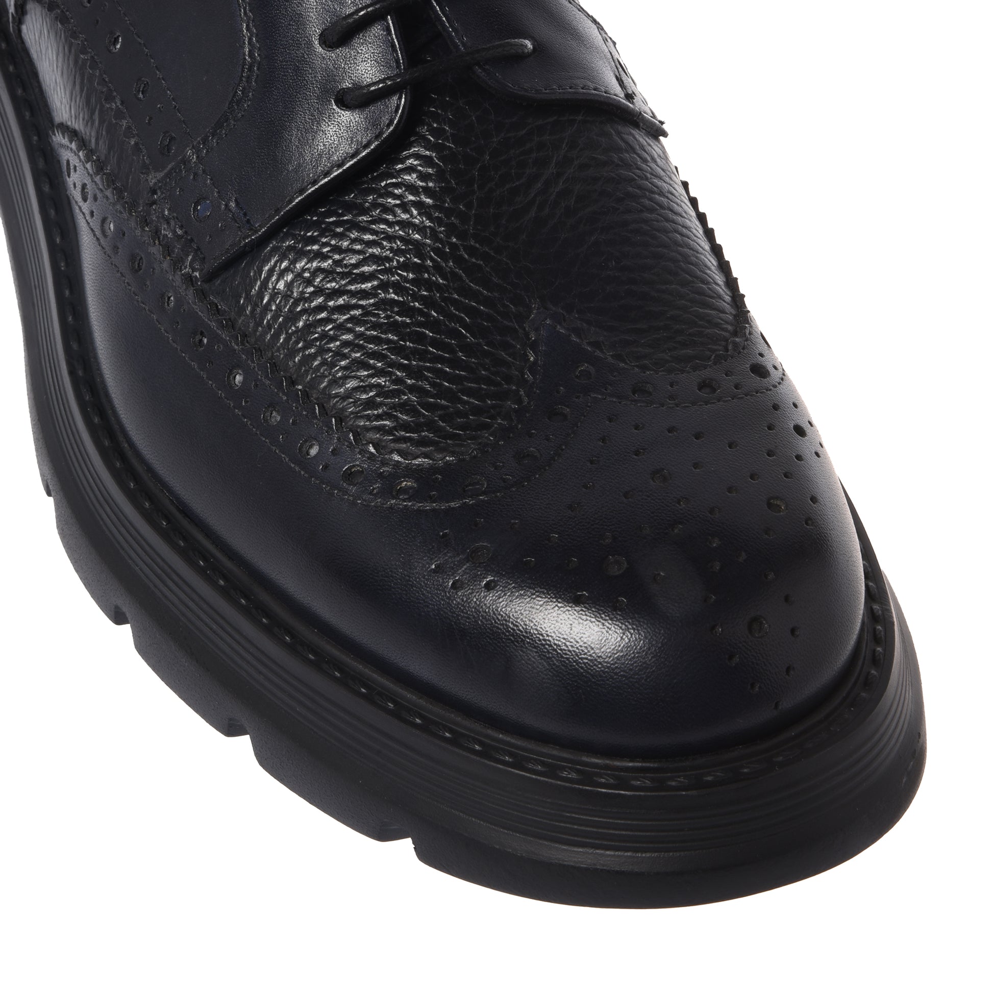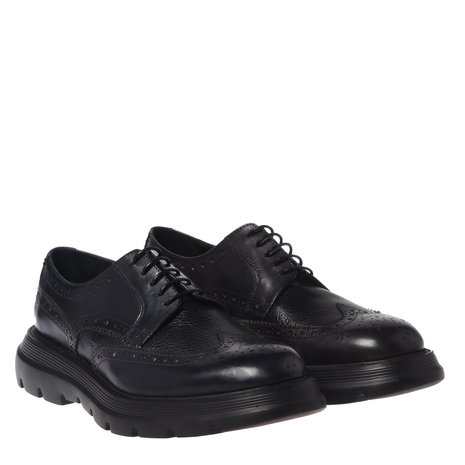 Black lace-up shoes in washed and tumbled leather