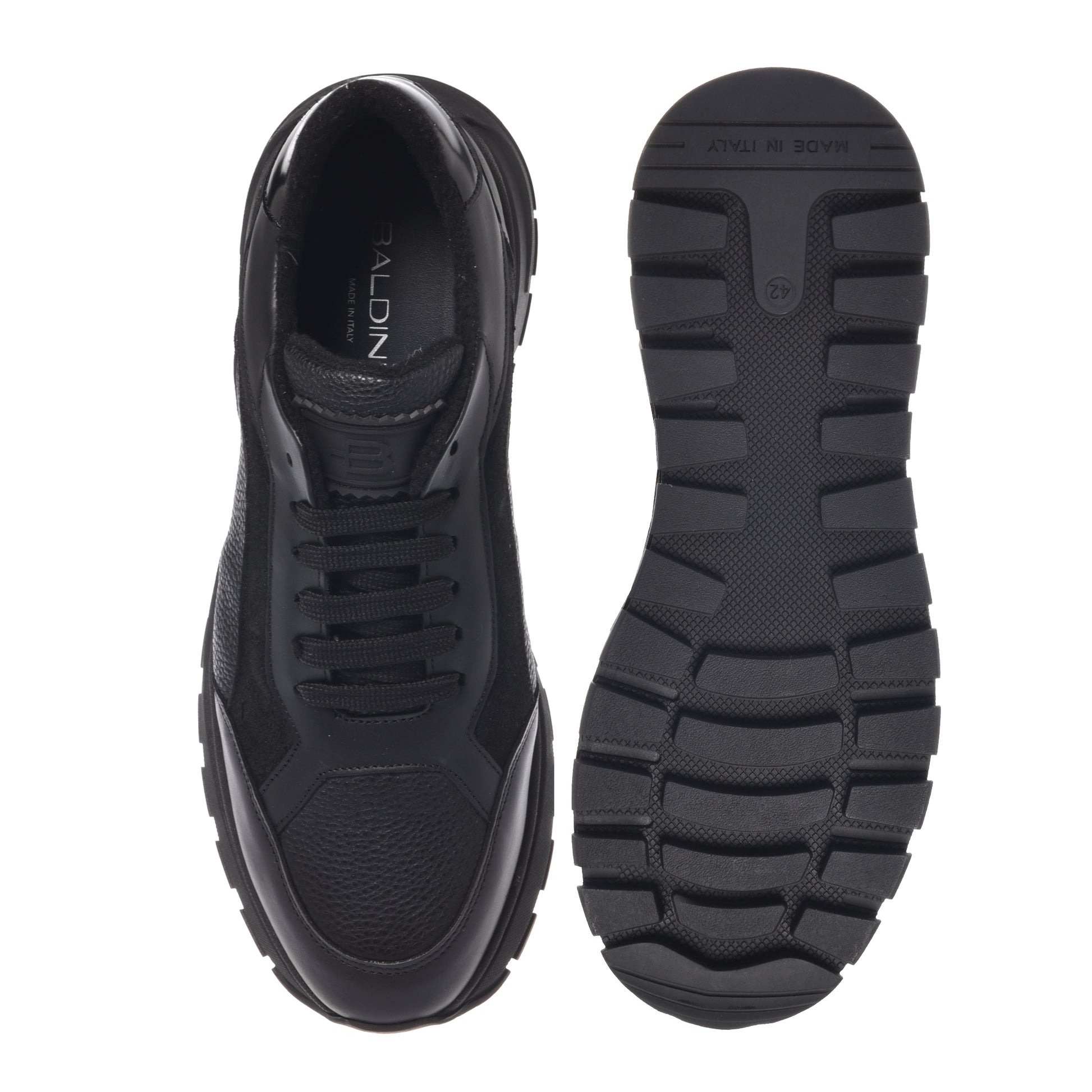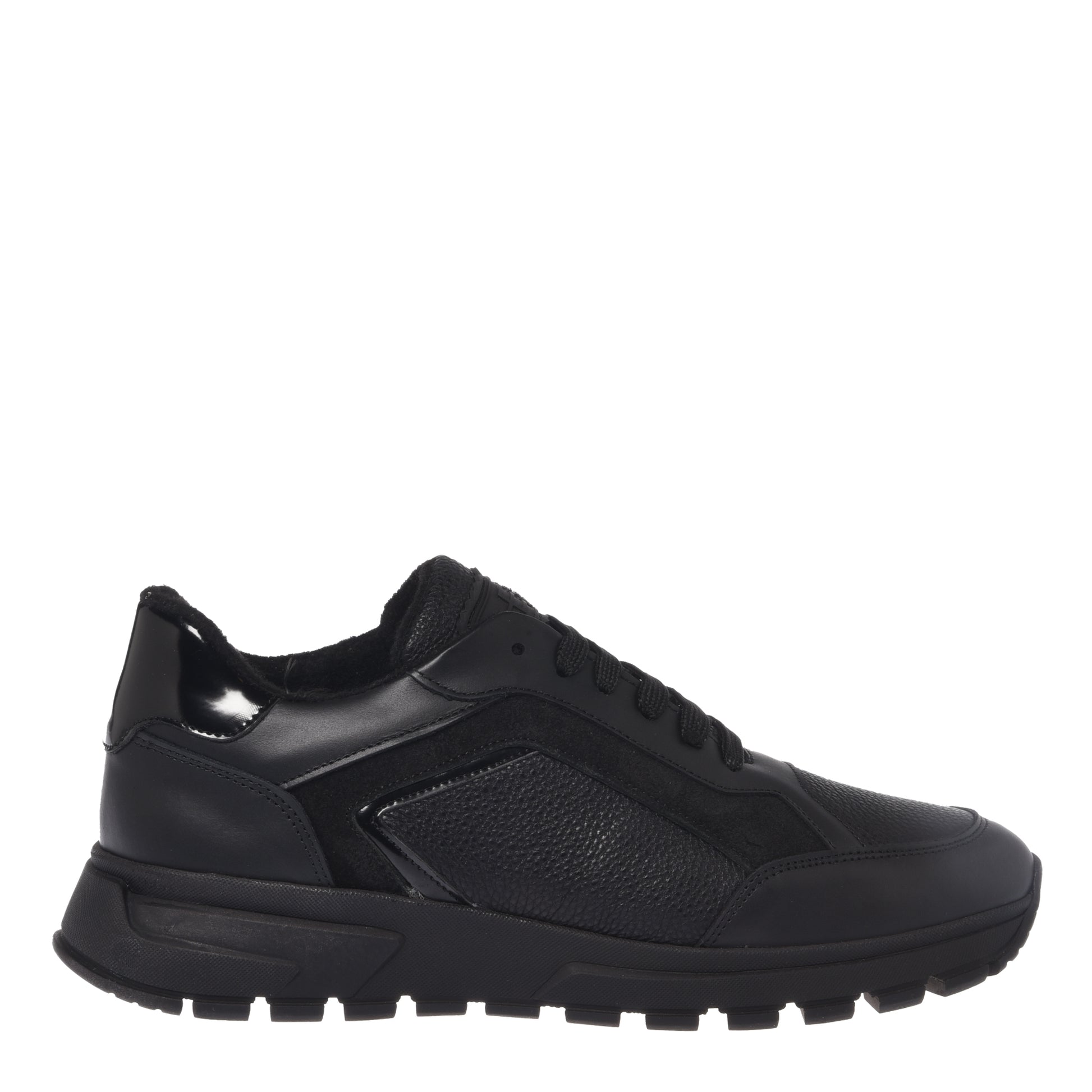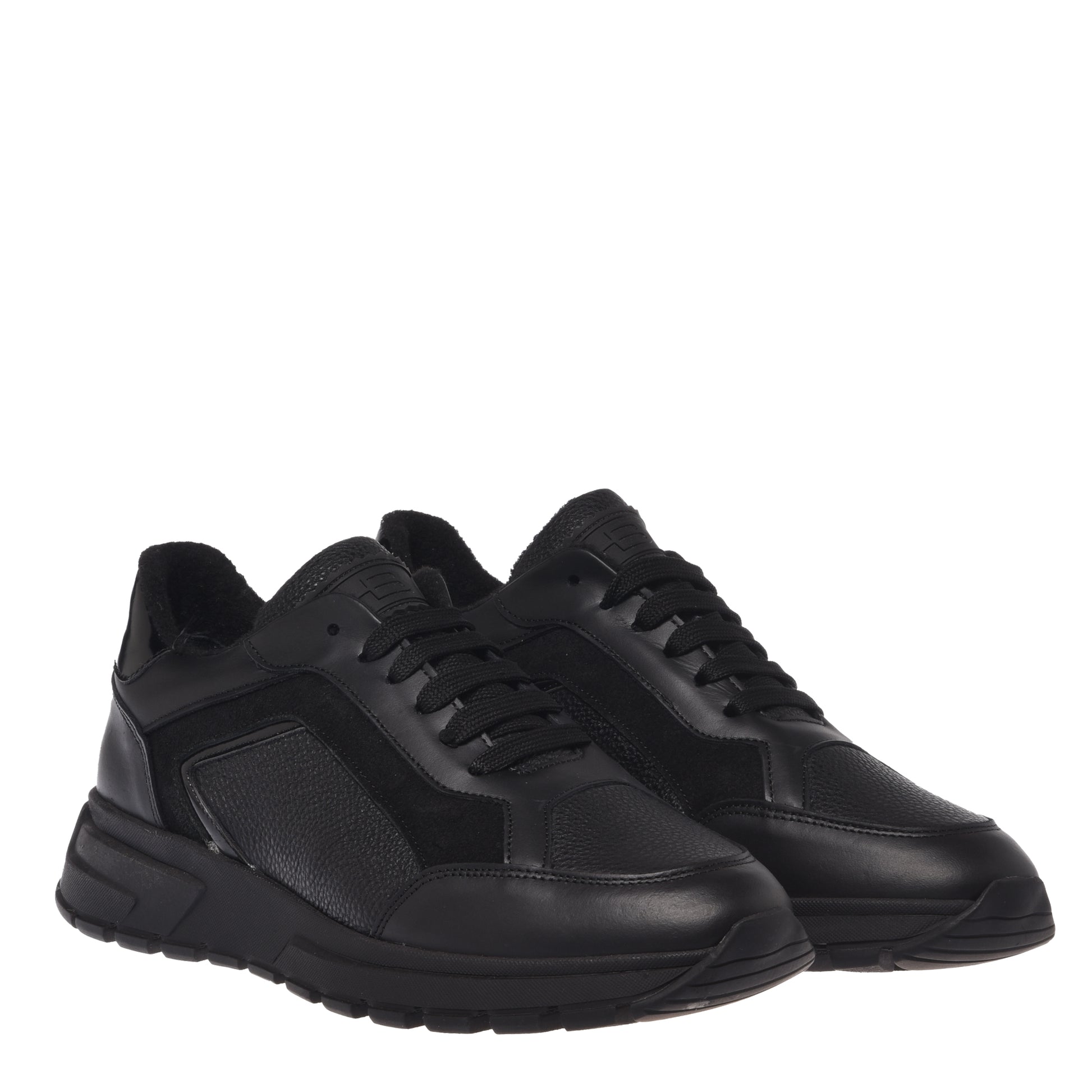 Smooth leather and black tumbled leather sneakers