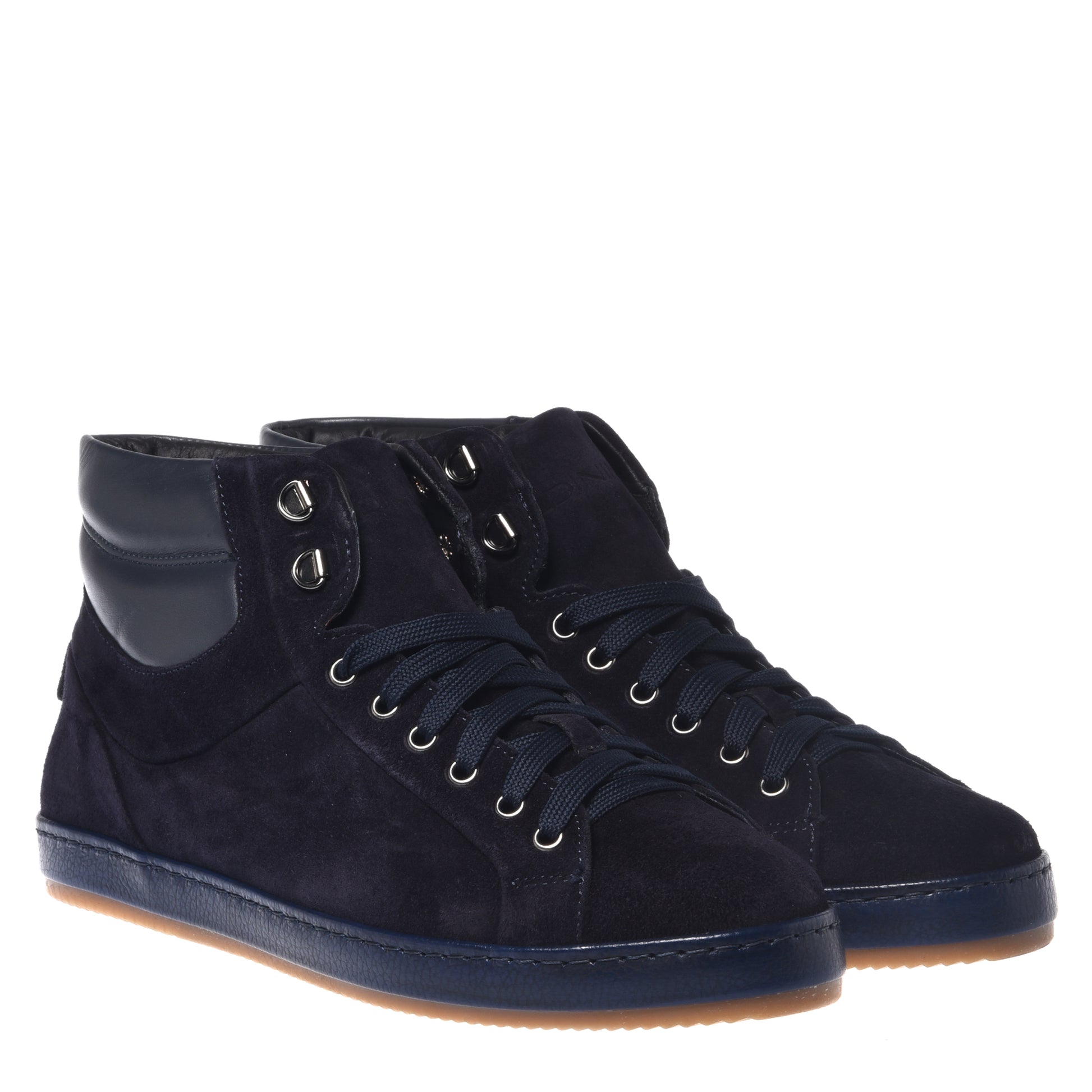 Blue suede and blue nappa leather sneakers