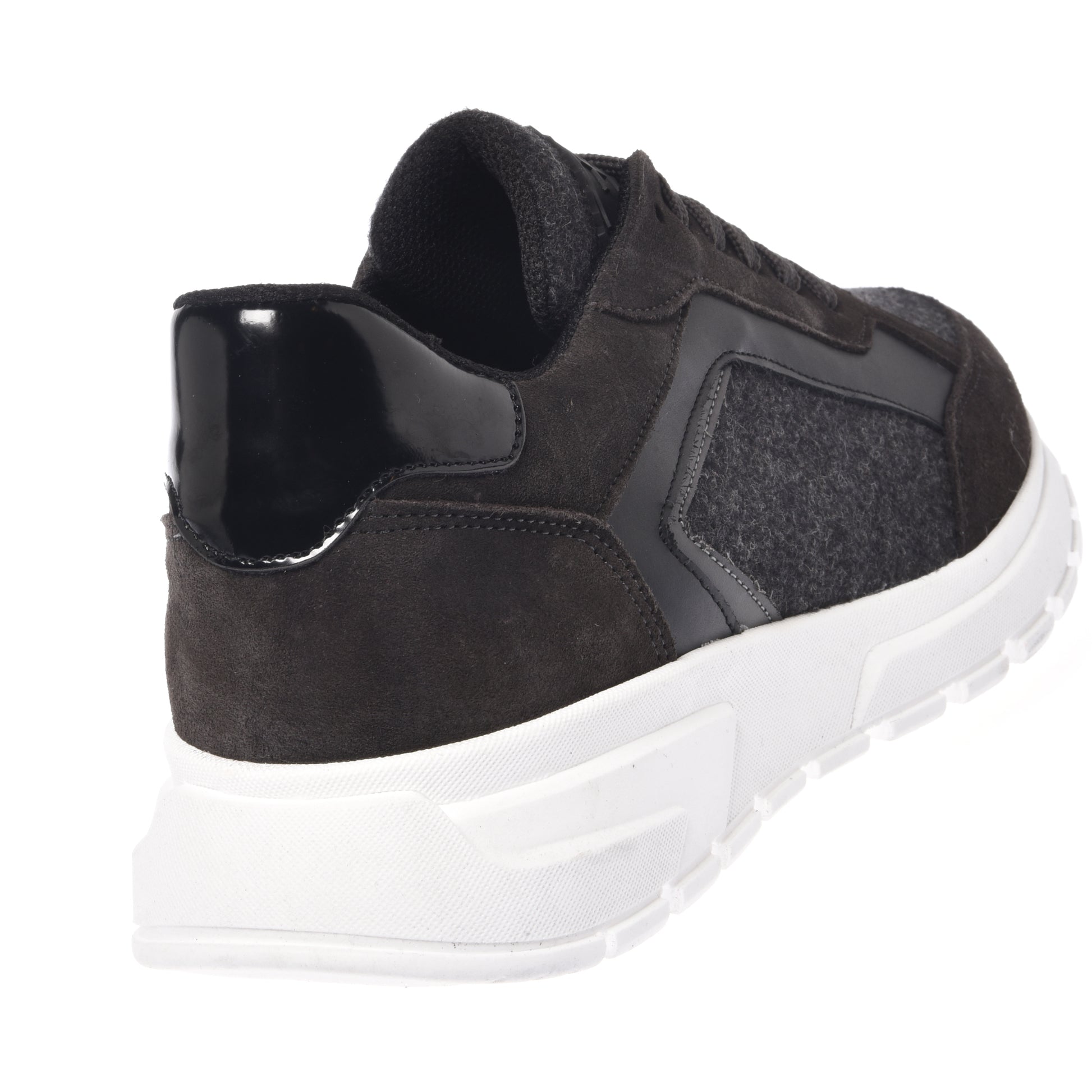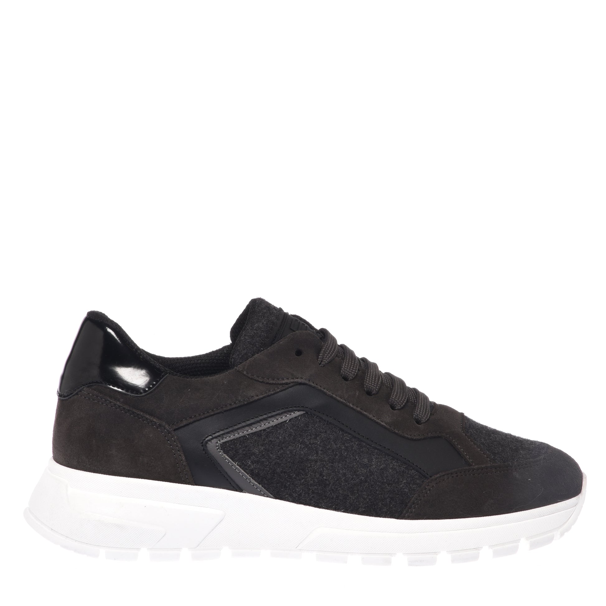 Sneakers in pelle scamosciata e tessuto di lana grigio scuro