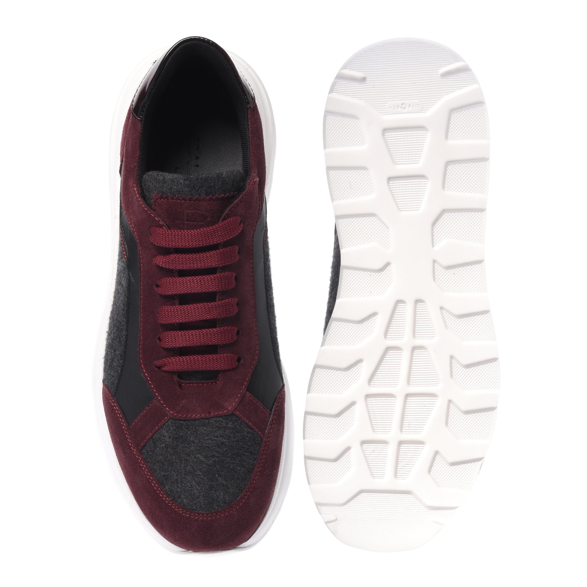Sneakers in pelle scamosciata bordeaux e lana grigia
